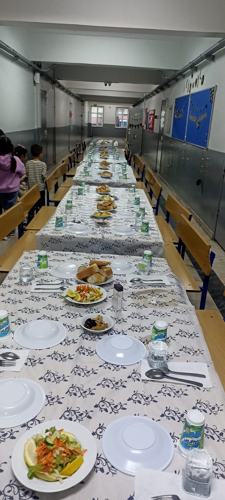 Nerede? Okulumuzda kendi masa ve sıralarımızda samimi bir ortamda ramazanın heyecanını beraber yaşıyoruz.